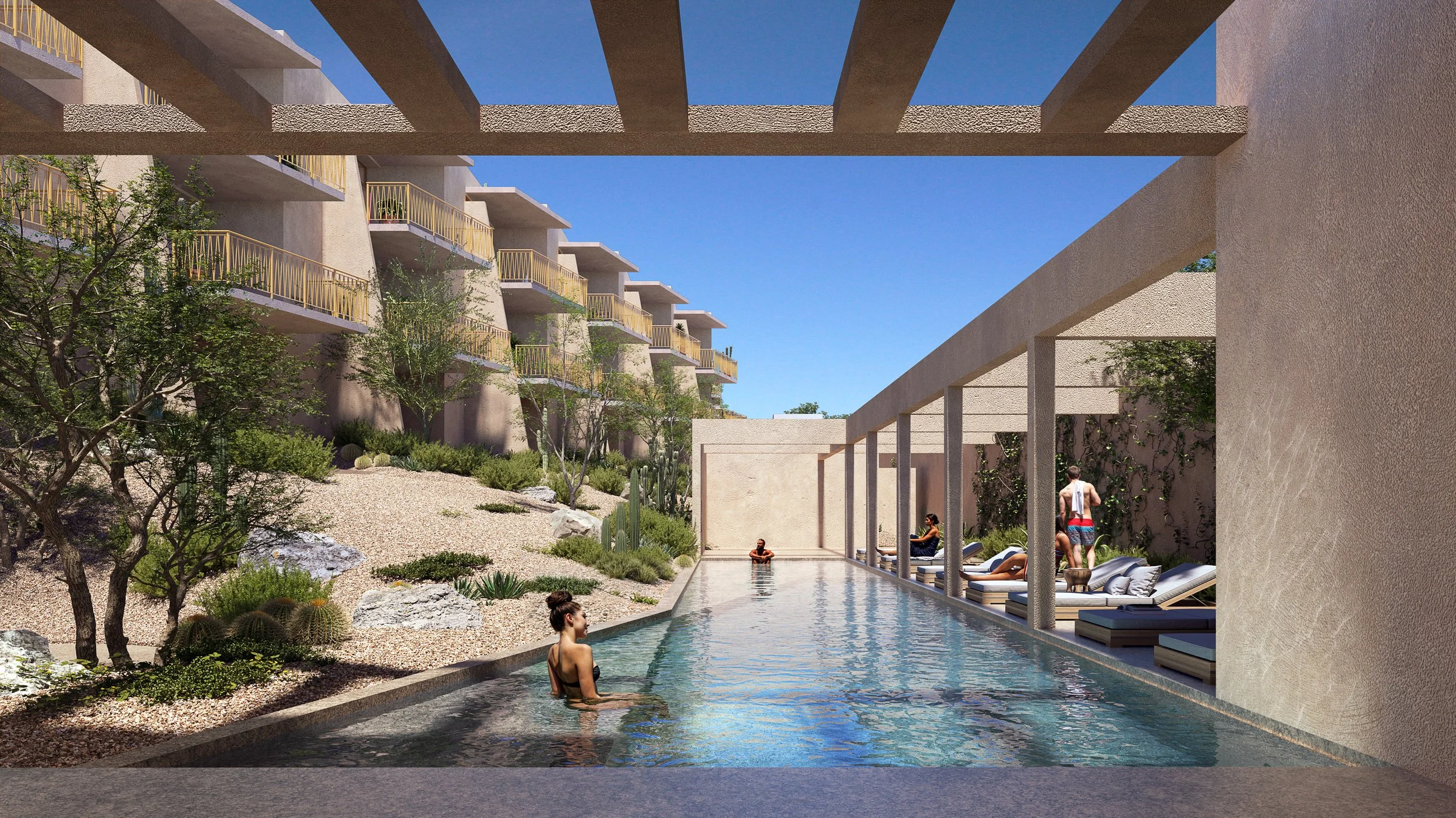 The project thrives on the concept of community. All 33 apartments have exclusive access to our pool, jacuzzi, gardens, fire pit, and roofed terrace.